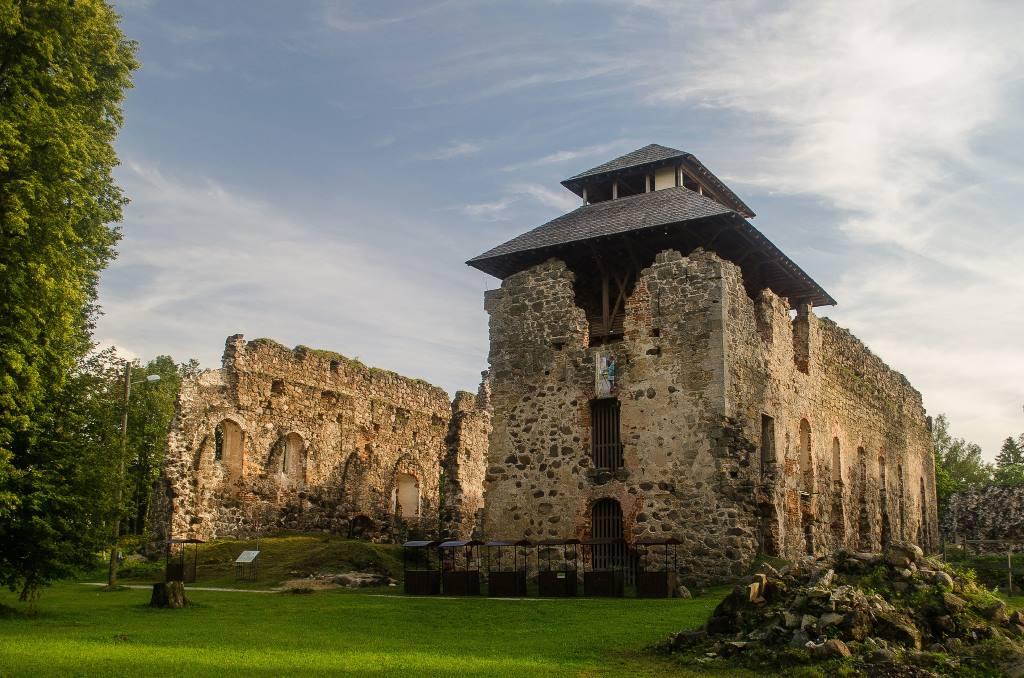 Besteigen Sie den Aussichtsturm der mittelalterlichen Burgruine von Rauna! Die Burg wurde neunmal von russischen, polnischen, schwedischen und deutschen Truppen zerstört. Die Ruine der Burg von Rauna gehört zu den am besten erhaltenen Ruinen des Landes, und der nördliche Teil der Ruine wird derzeit durch den Bau eines Aussichtsturms konserviert.