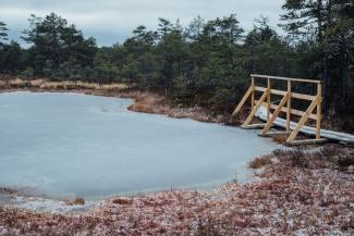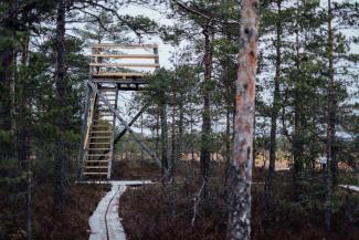 Am äußersten Punkt des Weges wurde in der Nähe kleiner Sumpfseen eine 3 Meter hohe Aussichtsplattform geschaffen.