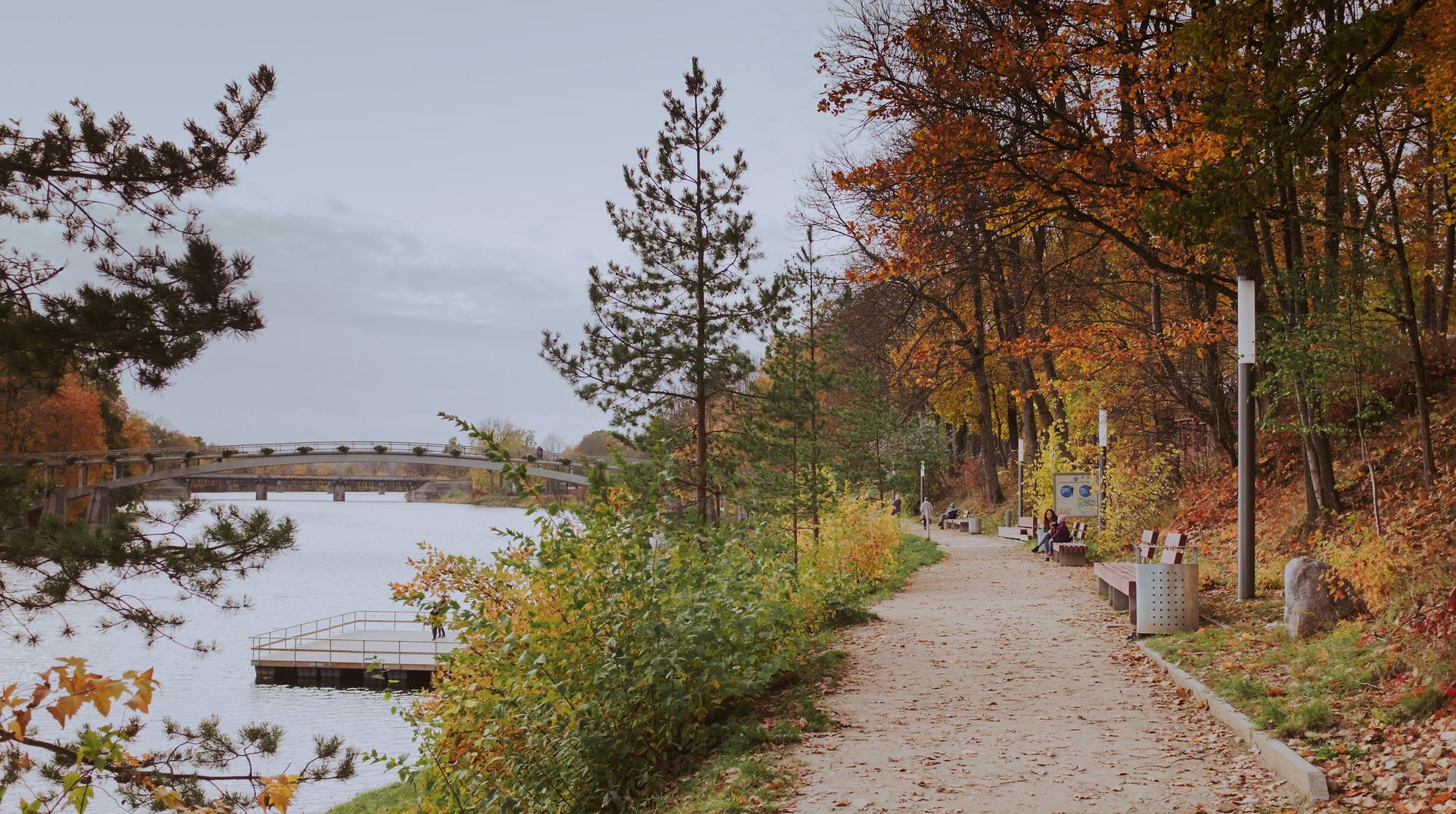 The renovated promenade stretches along the River Ogre for 2 km, offering a spectacular landscape following the flow of the river and its banks. The promenade begins at the footbridge over the river. The bridge was built in 1966 and it’s the largest arch bridge in Latvia. Since 2017, 100 m long wooden duckboards are being installed across the River Ogre, reviving the swimming resort atmosphere of Ogre of the 1920s and 30s. There was once a bridge across the river at approximately the same place. During the winter season the duckboards are dismantled.