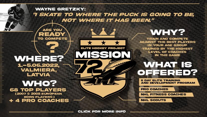 Mission 72 (M-72) is a cutting-edge, one-of-a-kind development experience for young players at a critical age in development. M-72’s main goal is to bring together 68 of the top 2007/08 birth year players in Europe and combine them with 4 elite, international coaches with NHL / IIHF - Olympic / SHL / USA Hockey Academies & NCAA backgrounds and experience.