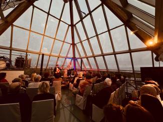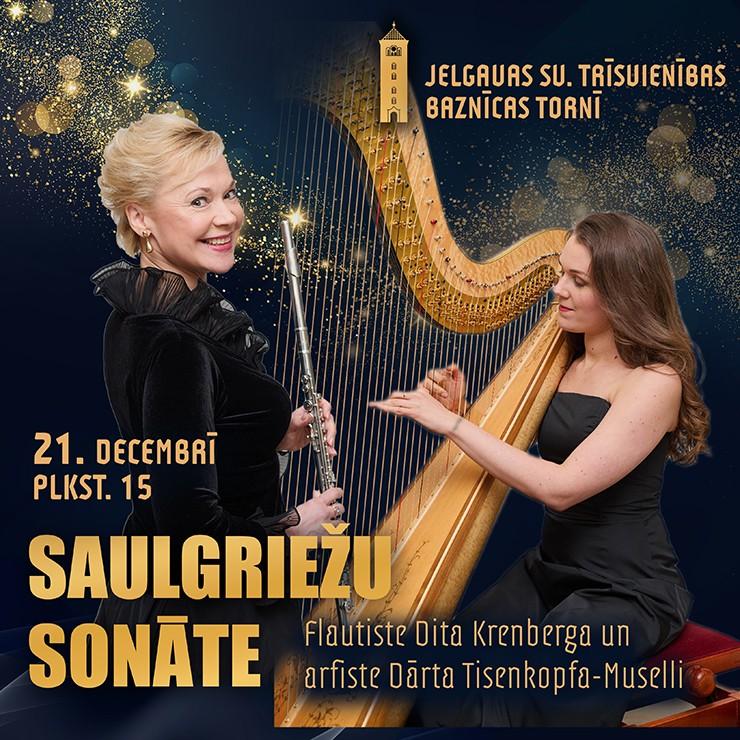 Welcoming the Fourth Sunday of Advent, flautist Dita Krenberga and harpist Dārta Tisenkopfa–Muselli will visit the spire of Jelgava Holy Trinity Church Tower with a special concert. The musicians invite listeners to spend the shortest day of the year in a unique atmosphere closer to the heavens, enjoying the refined interplay of chamber music for flute and harp. The concert will feature works by Nino Rota, Bach, Philippe Gaubert, Gaetano Donizetti, Marc Berthomieu, and others. Dita Krenberga and Dārta Tisenkopfa-Muselli have been performing as a duo since 2022, their first collaboration being a program created for the “Winter Chamber Music” festival. So far, their duo has focused on 19th- and 20th-century French and Italian chamber music, and they have also performed Mozart’s Double Concerto in C major. The concert will take place on the 9th-floor observation deck of the Jelgava Holy Trinity Church Tower. Please note: The observation deck is not accessible by wheelchair. A seat is guaranteed with each ticket, but seats are not numbered, so they can only be chosen upon arrival at the concert.