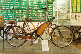 The wooden bicycle, produced in 1940 at the VEF workshop of sports planes in a single copy is a unique exhibit: it was constructed by Kārlis Irbītis, the most famous Latvian aviation engineer of the time, using materials intended for plane construction. New exhibits are constantly added to the collection of ancient bicycles. Its owners will be grateful for any information on places where old bicycles or their spare parts could be found.