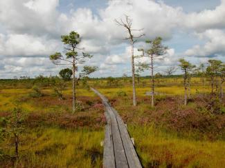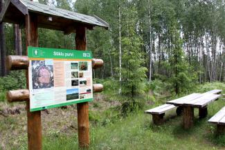 The length of the nature trail is 4 km, and the footpath has been made to introduce visitors to one of the most beautiful habitats of Latvia’s nature – a moss or raised bog. The footpath goes along several beautiful bog lakes. In the middle of the trail, it is possible to climb a bird-watching tower.