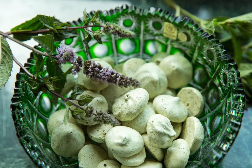 - Izgreznot traukus ar piparmētru ornamentiem;